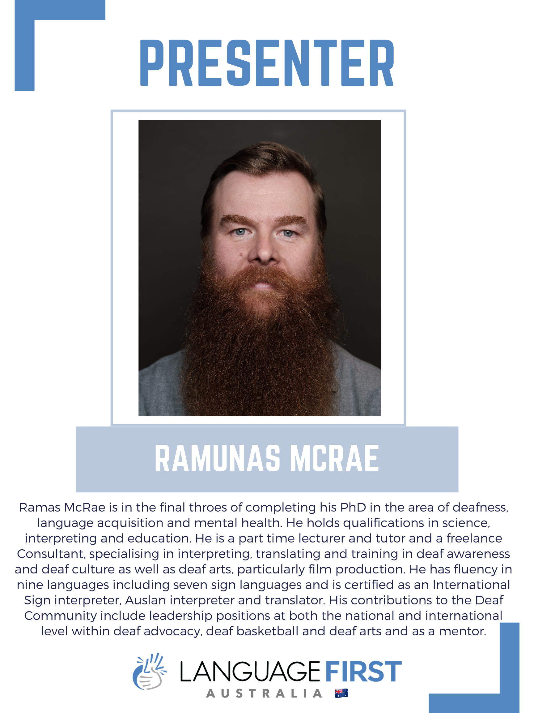 Financial disclosures: Dr McRae is receiving payment from Language First for presenting.